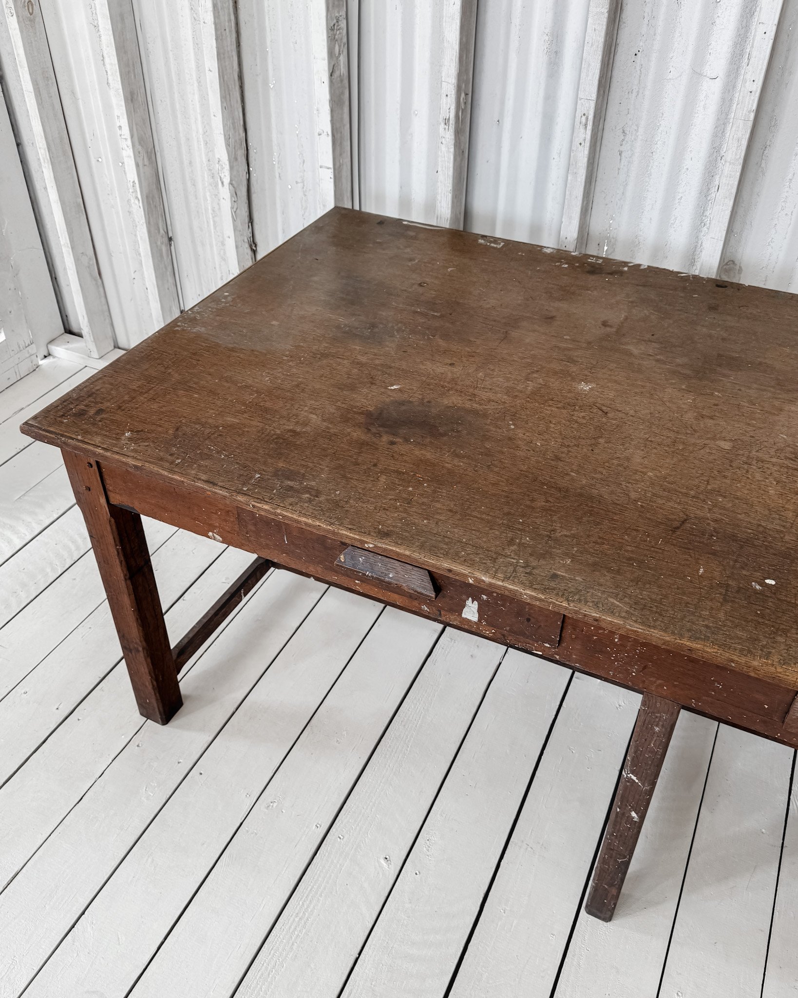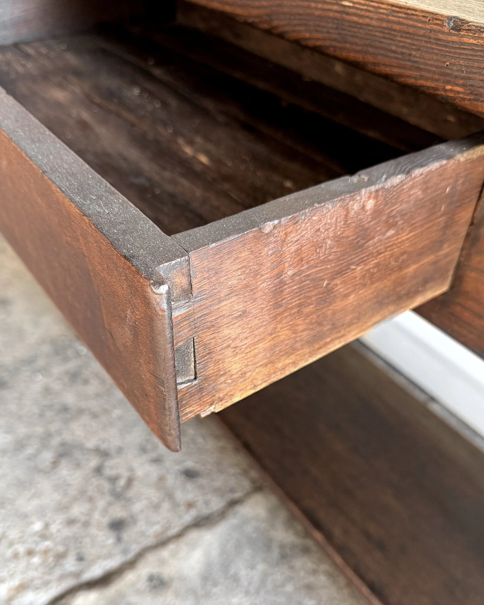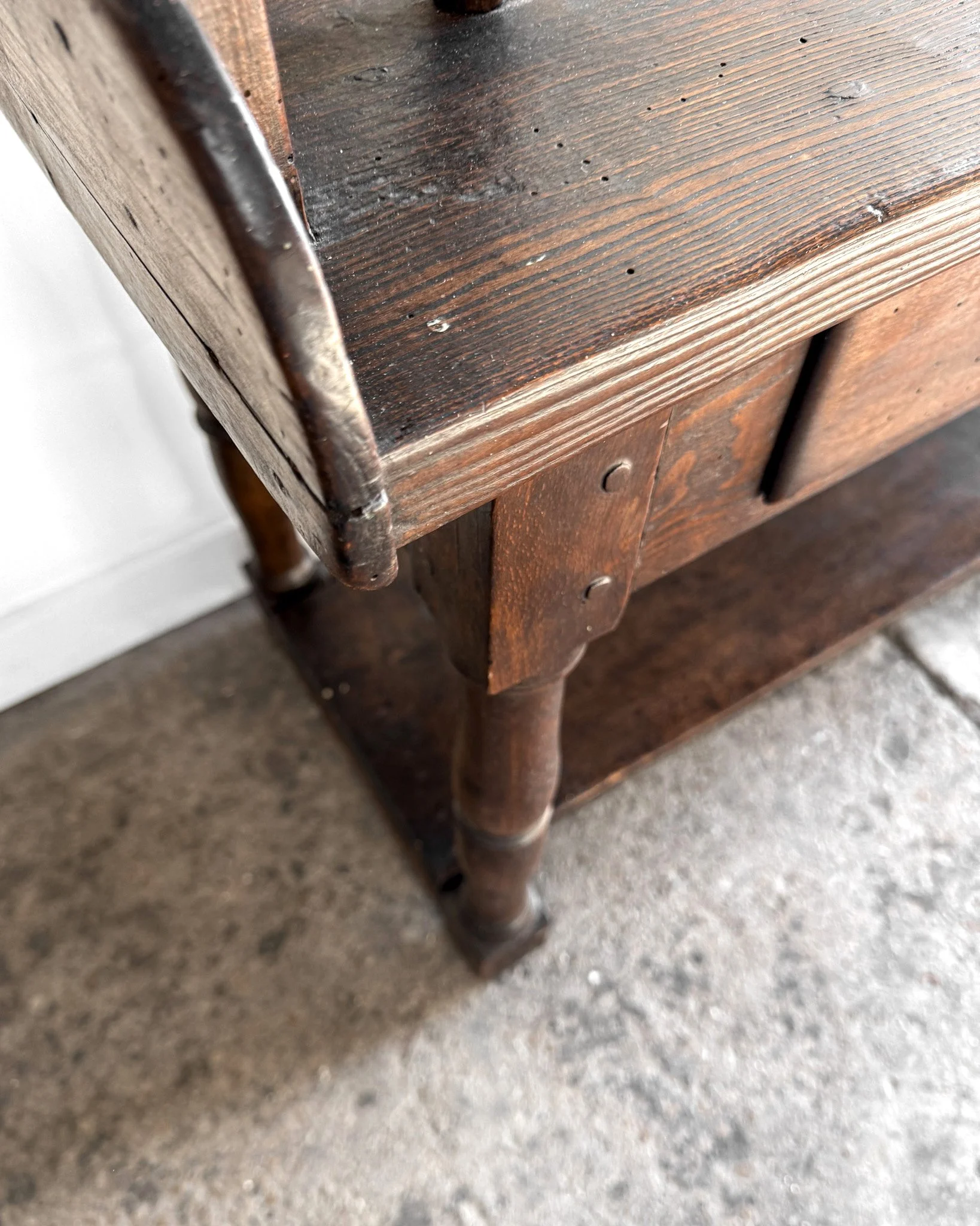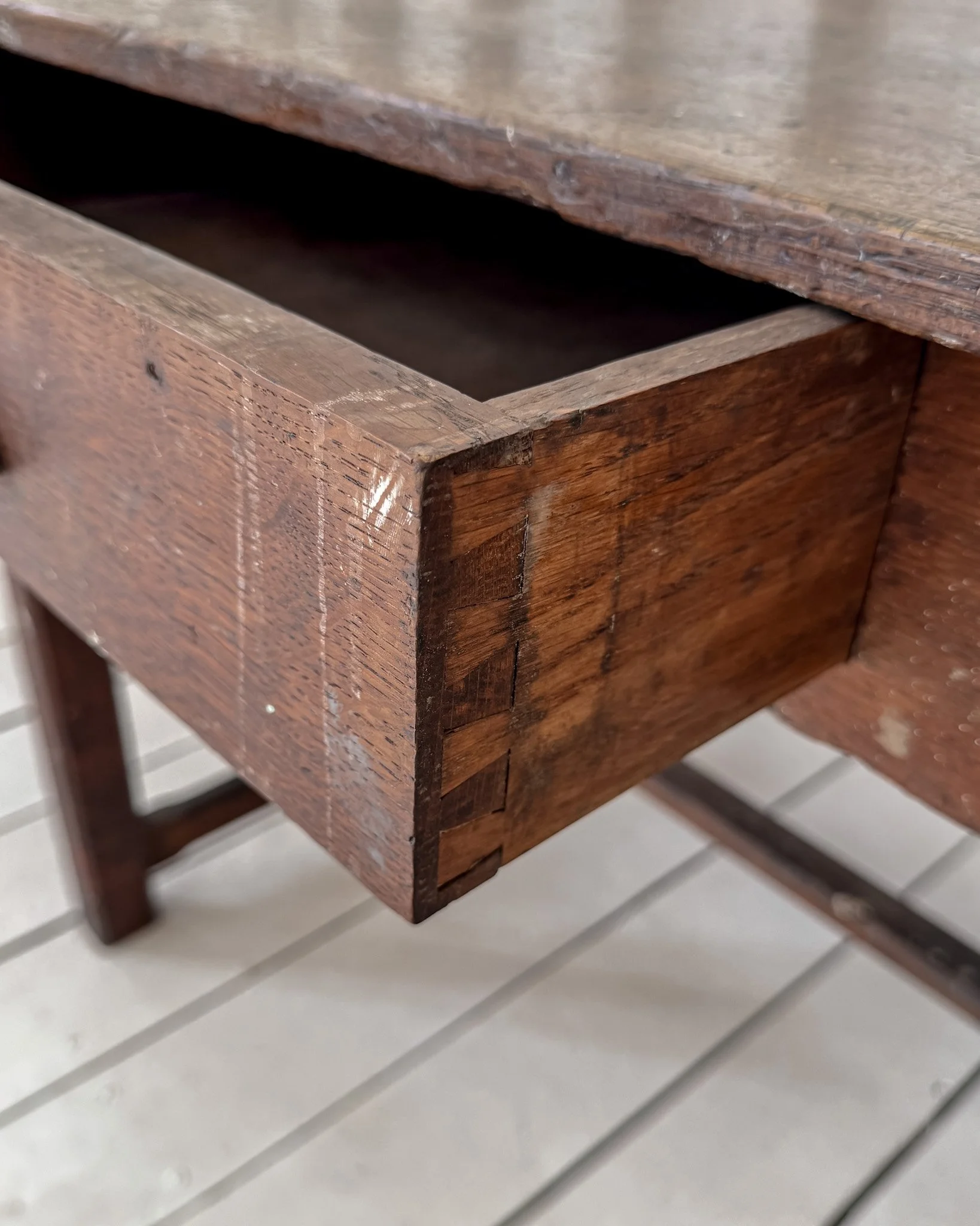 We’re a sucker for anything with turned legs and this antique side table is no exception! Constructed from pine, the table features a single drawer adorned with the original porcelain knob that is perfect for keeping all your favorite treasures within reach.