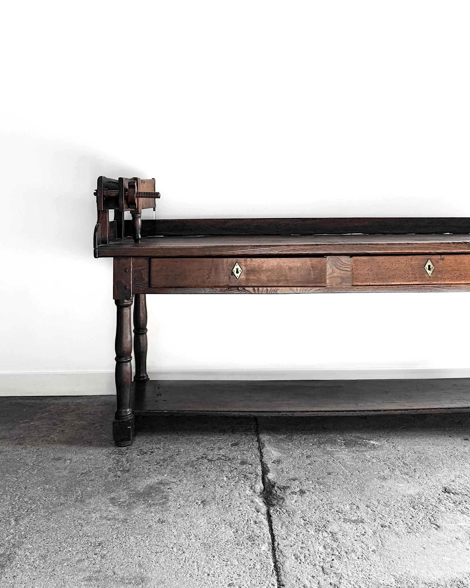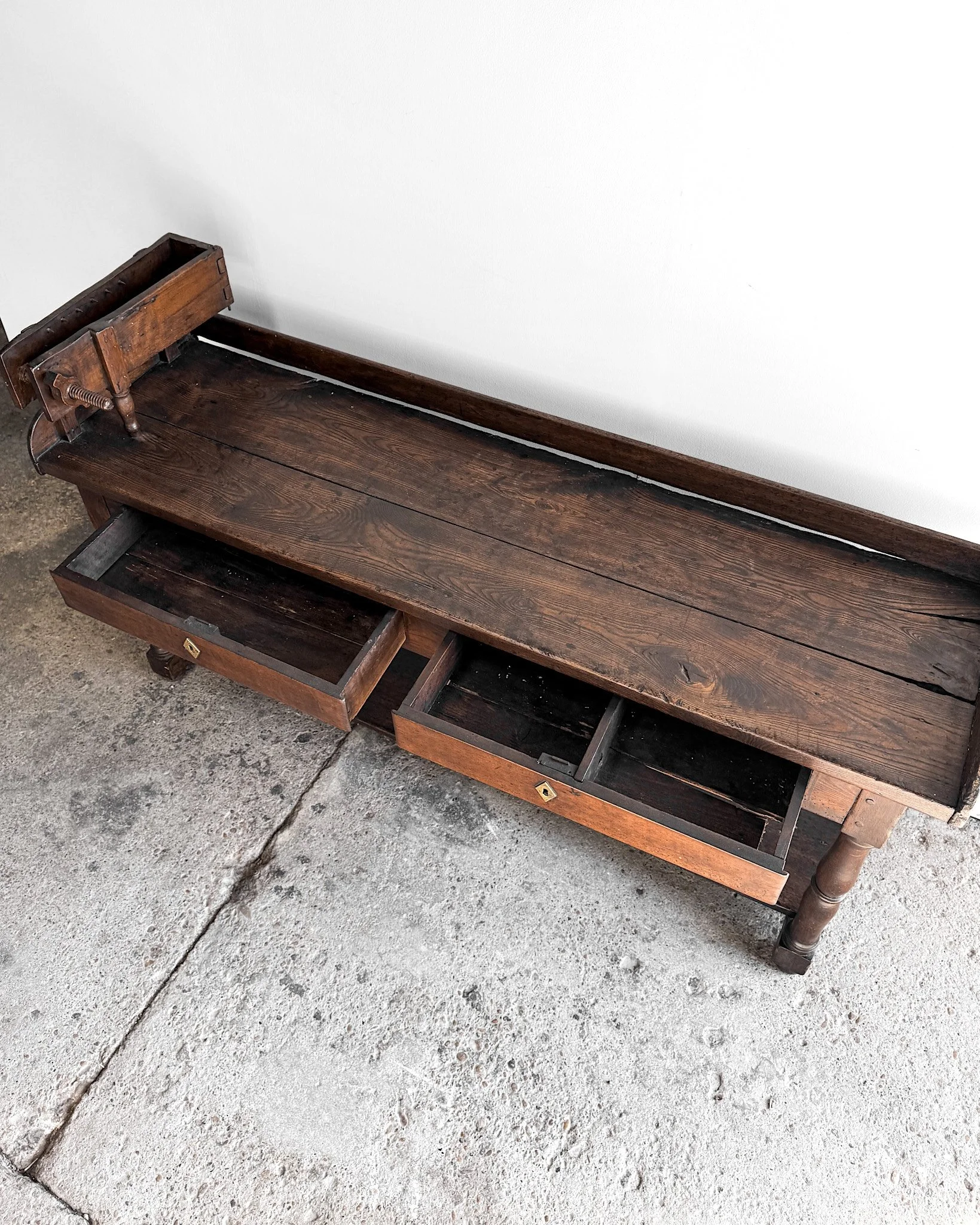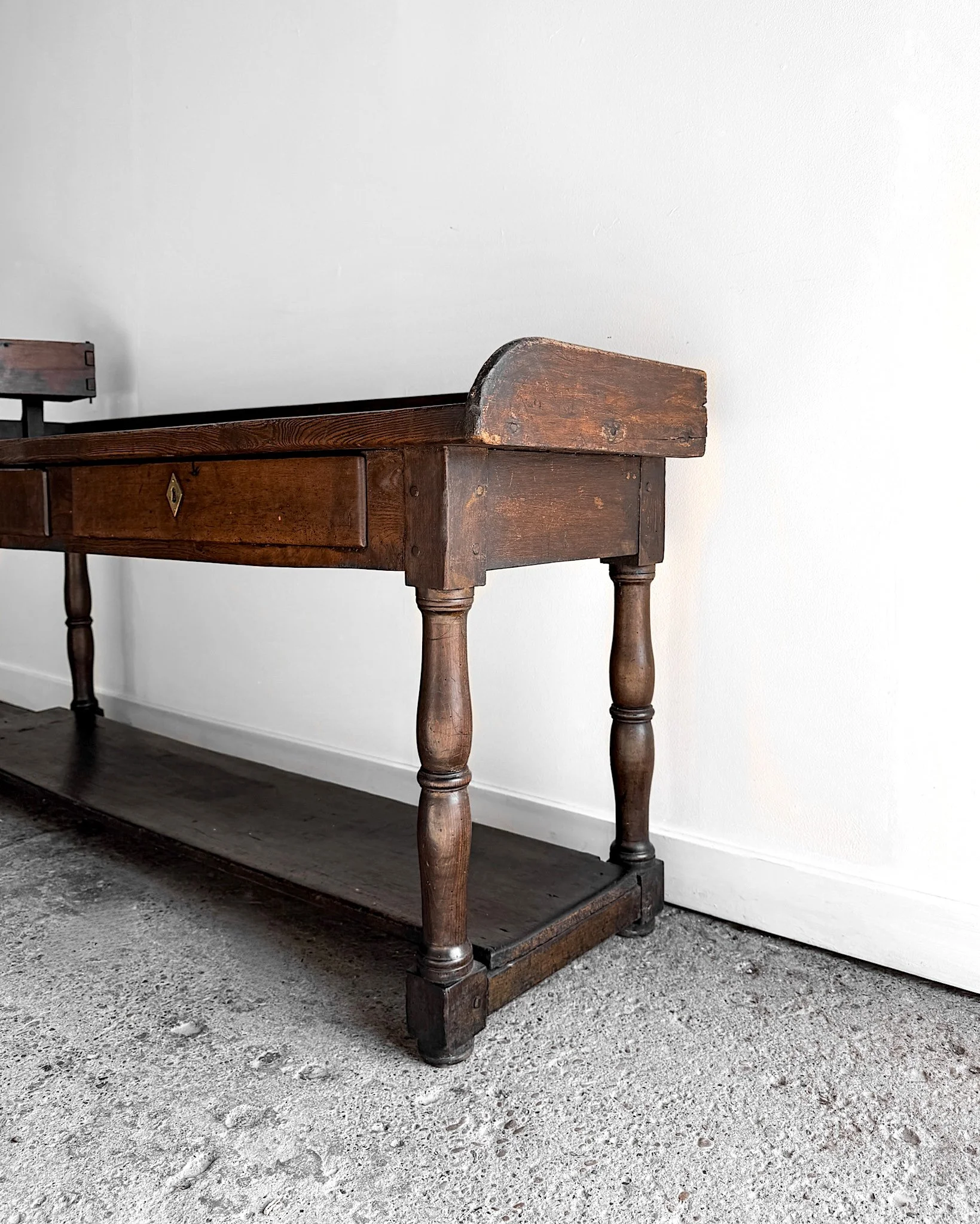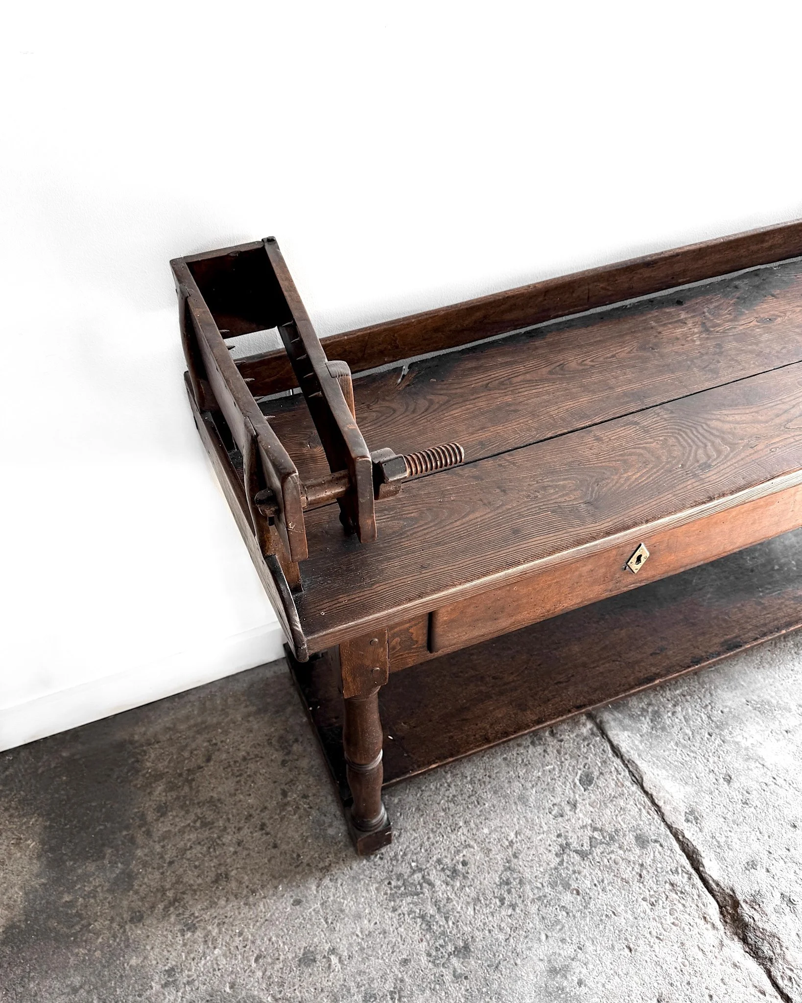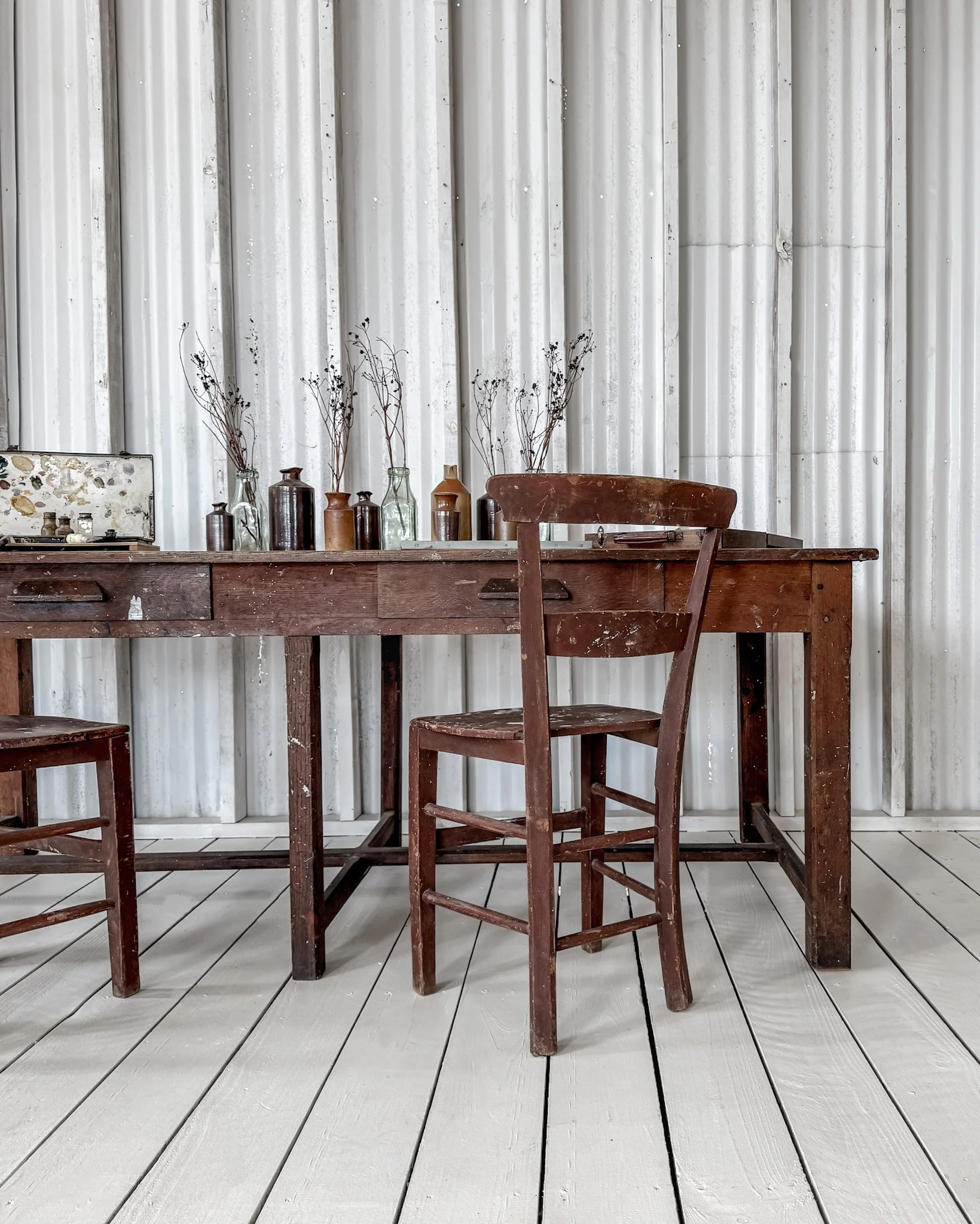 We’re a sucker for anything with turned legs and this antique side table is no exception! Constructed from pine, the table features a single drawer adorned with the original porcelain knob that is perfect for keeping all your favorite treasures within reach.